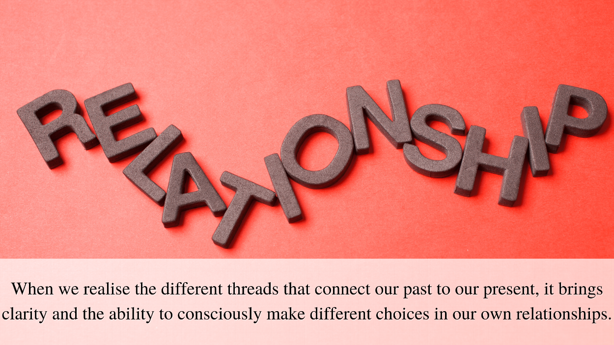 When we realise the different threads that connect our past to our present, it brings clarity and the ability to consciously make different choices in our own relationships.